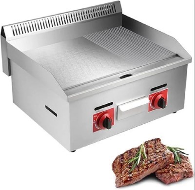 The Gas Griddle Plate from Mahesh Distributors is a robust and efficient cooking appliance designed for commercial kitchens. Crafted from high-quality stainless steel, it offers durability and resistance to corrosion, ensuring longevity even under heavy use. The spacious griddle plate is ideal for preparing a variety of foods, such as dosas, chapatis, pancakes, and grilled sandwiches. Equipped with high-performance gas burners, this griddle ensures quick and uniform heating, enhancing cooking efficiency. Precise temperature control allows chefs to maintain consistent heat levels, crucial for achieving perfect cooking results. The design incorporates safety features like sturdy knobs and a well-insulated body to prevent heat loss and ensure user safety. Its compact and ergonomic construction makes it suitable for various kitchen layouts, optimizing space utilization. Easy to clean and maintain, the Gas Griddle Plate from Mahesh Distributors in Bangalore is a reliable choice for restaurants, hotels, and catering services seeking a dependable and high-performing griddle to enhance their cooking operations.